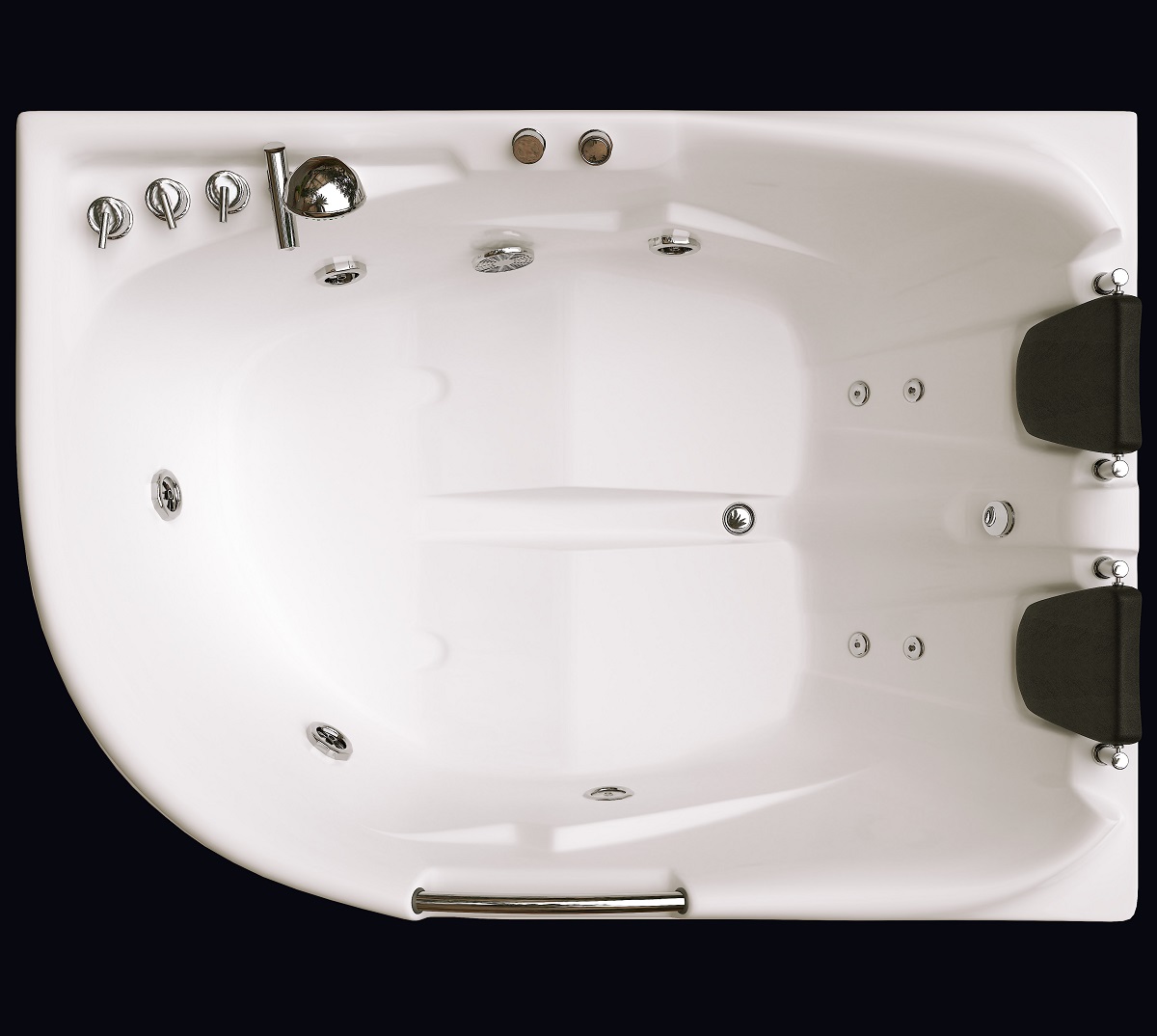 Комплектация: насос, воздушный переключатель, регулятор воздушного потока, душевая лейка, подушечка, полка, Л-образный патрубок подвода воды, 5 больших форсунок, 4 маленькие форсунки, смеситель, сифон